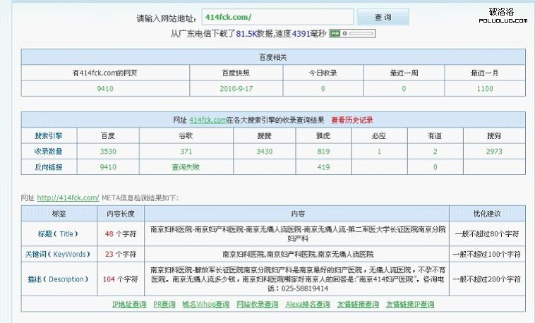 該圖片網站的整體收錄與網站的快照情況如上圖所示,優化後收錄數量還可以繼續增加,網站的快照相對更新較慢,在優化後,快照應該是隔天更新的,網站目前的整體設置架構對搜索引擎是比較友好,存在的問題和不足是網站的權重相對較低,關鍵的排名不太好,因此優化的時候我們需要針對每一個關鍵詞來引導搜索引擎更好的抓取網站的內容。