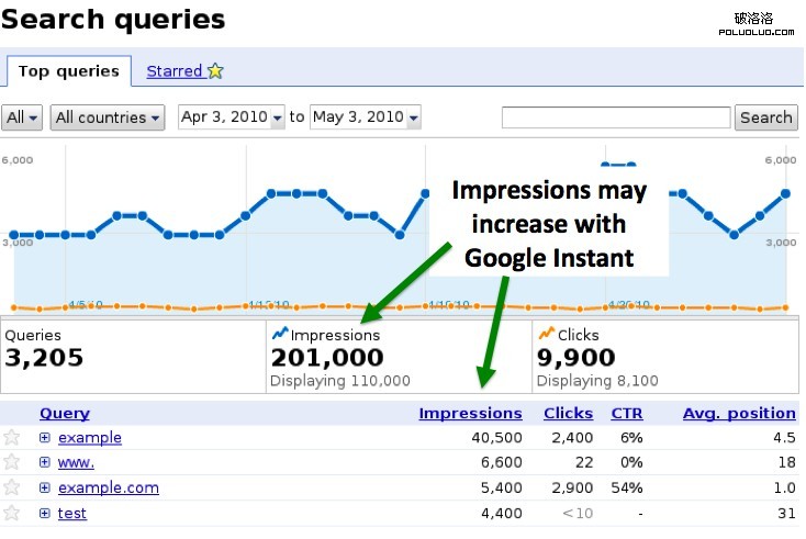 網站站長們可能已經注意到您的搜索查詢數據由於谷歌即時搜索(Google Instant)的發布而發生了變化。憑借谷歌即時搜索,頁面可以實現動態更新,顯示包含您最新輸入的搜索結果,這意味著人們將能夠以比往常更快的速度查看和訪問您的網站,並且通常不需要點擊搜索鍵,或者敲擊“回車”鍵。