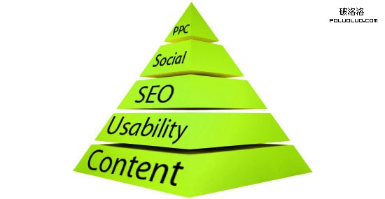 網站金字塔結構:網站內容---用戶體驗---SEO--- 媒體宣傳---PPC。支撐最基礎是內容!!!