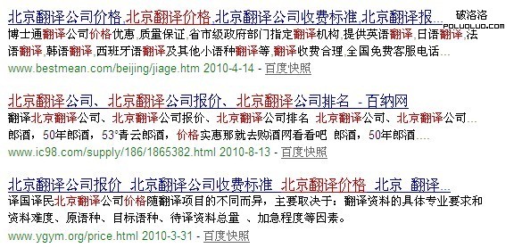 這幾天為一個翻譯公司的網站做優化,真的是從頭做起,從網站初期建設到現在已經有1月了。在做內容的時候,實驗了一些新的想法。呵呵,首先是標題,其次是標題與內容的關系。