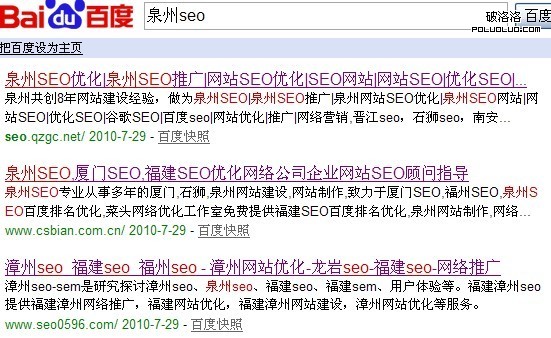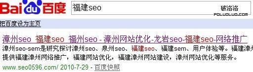 話說,泉州seo博客之前是主打漳州seo和福建seo(因為之前我的師兄清水整的是泉州seo)現在均已第一個了。