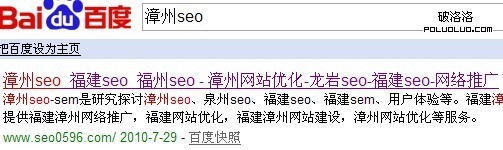 但是大家發現沒有,我的三要素中標題中沒有泉州seo,關鍵詞中也沒有泉州seo,僅僅是描述中包含有一個泉州seo,而且還不是在最前面的。那麼大家就要說了,這樣你的泉州seo怎麼可能排上第三呢?