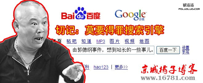 郭德綱就好比我們每一個站長,而BTV或者各媒體或者各個J者就好比是搜索引擎,其中的門道只可意會不可言談咯,但任何站長都堅持為一種站長精神而去做站,那樣會更有意義,在這裡作為一個小草根站長,向同樣是草根站長的朋友推薦一個好習慣,那就是每天堅持寫博,記錄一些網站發展日志、技術更新資源分享之類的,是很有意義的一件事情,我的博客http://www.16781.com 歡迎大家串門,一定回訪。