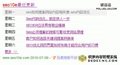 網站需求:本人需要放置最近一周原創文章更新列表,因為本人的原創比較多。