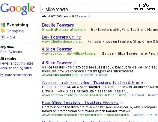 經常玩英文Google的朋友應該有這種經驗,很多情況下,特別是搜些產品,家用電器(比如面包機)時,經常能在首頁上看見比如Amazon,Bizrate等超級大站,而且出現結果的頁面往往都是產品列表頁面。