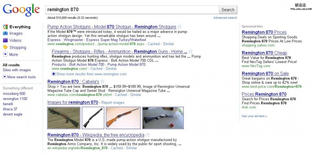 看這個例子,關於雷明頓870霰彈槍的所有廣告都是價格比較網站,這很可能意味著各廣告主所獲得的轉化價值是接近的,因為都只是線索銷售。