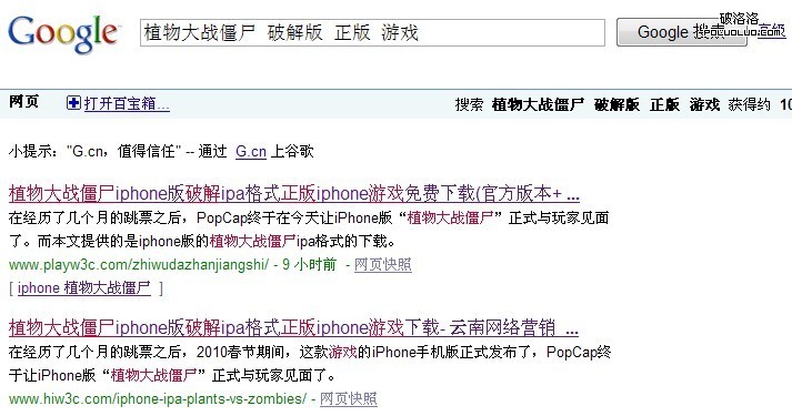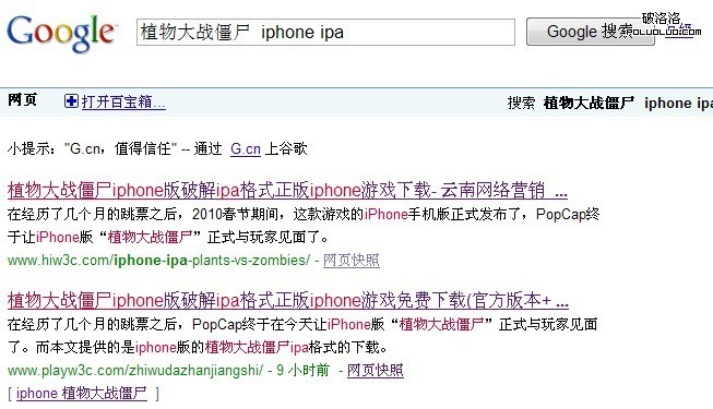 結果,細想後發現,我們搜索的關鍵字是“植物大戰僵屍 iphone ipa” 他的url裡恰好包含關鍵字