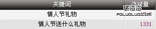 查詢這個頁面的其他一些關鍵詞比如情人節送什麼,情人節送什麼禮物,最有創意的情人節禮物,最浪漫的情人節禮物,也紛紛出現在了第一頁面,這幾個關鍵詞也帶來了每天上千的獨立IP。