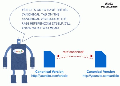 這是使用 rel=canonical 屬性的標准方式。頁面的不同版本——不管是在你自己的頁面還是合作伙伴的頁面或者發布授權內容的位置(注:這是 Google 2009年12月17日新發布的更新說明)—— 都能指回原版內容以便告訴搜索引擎哪裡可以找到最初版本。 然而,按以下方式來做也是可取的: