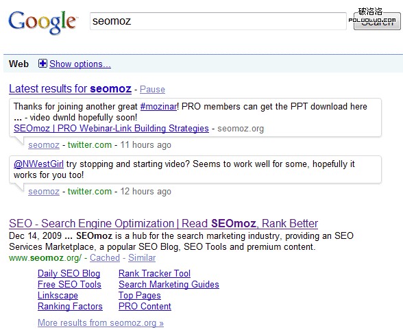 Google不准備只是采用tweets和re-tweets的原始數據。我認為他們在用自己的方式計算tweets和tweet來源的相關性和流行度,來決定誰會顯示在實時搜索結果中,並且我期望這種算法/標准應該像PageRank一樣。今天,SEO們想將tweet轉化為鏈接,以在SEO方面獲得好處。我感覺tweets將在不遠的將來在Pagerank裡會有自己的權重。