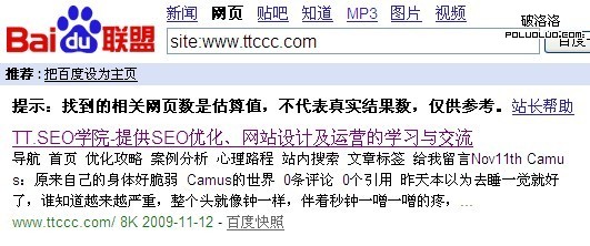 12日,百度也緊接著收錄了。圖為未改版之前的首頁標題簡介等都未曾改動(其實已經改動了,只是還未更新出來)。