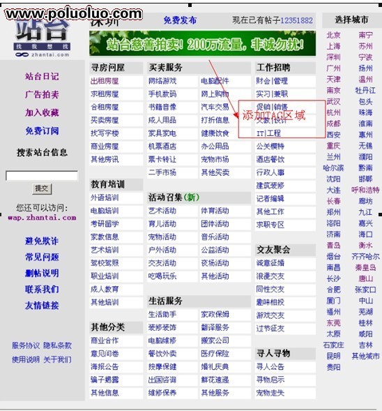站台網,是一家成立6年以上的大型分類信息網站,涉及全國各主要城市,流量每天都保持在300萬PV左右。PR6收錄,收錄在50萬左右。但是站台網主要在北京地區有很高影響力,缺乏對其他城市的深入。後來我接手SEO方面工作,主要對深圳從SEO方面進行優化。