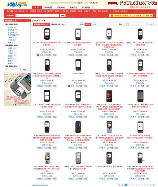 京東站內搜索最大優勢是搜索結果信息設計飽滿均衡,這一點表現在商品描述信息上,如每個商品名稱比包含其對應的英文名稱,如“諾基亞(Nokia)5030 GSM手機 紅色送迪士尼正版手機袋!輕巧耐用,實惠超值之選”這一點就解決了上面我們商城站內搜索出現中文搜索得到而英文搜索不到的弊病,而要做到這一點是需要對商品特點了解很清楚的專業客服人員,屬於“人海戰術”(後面有說明)