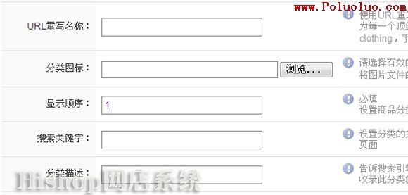 在商品分類管理裡面,可以對沒一個分類重寫URL,使用URL重寫可以增加分類浏覽頁面對搜索引擎的友好性,為每一個頂級分類指定一個重寫名稱,比如服裝可以填寫clothing,手機可以填寫mobile,讓用戶一目了然,也更容易被搜索引擎抓取。如圖: