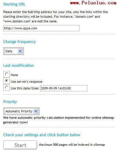 網站索引Sitemap文件是一個地圖類似的文件,這個xml割捨的文檔列出了網站內容所有文章的標題和地址,便於搜索引擎對網站的內容的快速收錄。http://www.xml-sitemaps.com是一個在線生成的網站,只需要填寫網站的地址,以及更新的頻率,修改時間等信息,就可以生成一個完整的sitemap文件。當文件制作完成後,可以到Google的管理工具網站中提及(地址:https://www.google.com/webmasters/tools)
