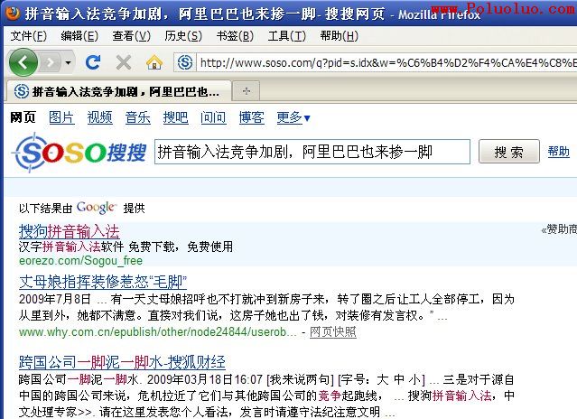 5.有趣現象,竟然在SOSO搜索結果頁上看到搜狗拼音輸入法的廣告。