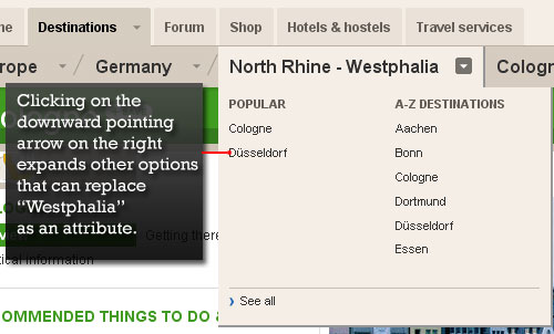 Lonely Planet 也有一個彈出面包屑,你可以從中改變特性選擇。