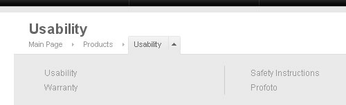 Profoto 有一個獨特的面包屑路徑:點擊面包屑鏈接時在它下面打開一個區域,從而為用戶提供附加的屬性來選擇。