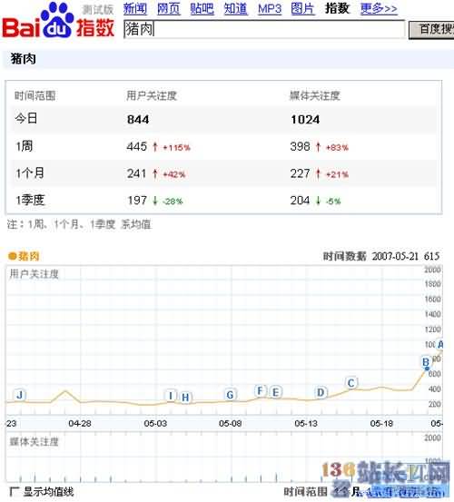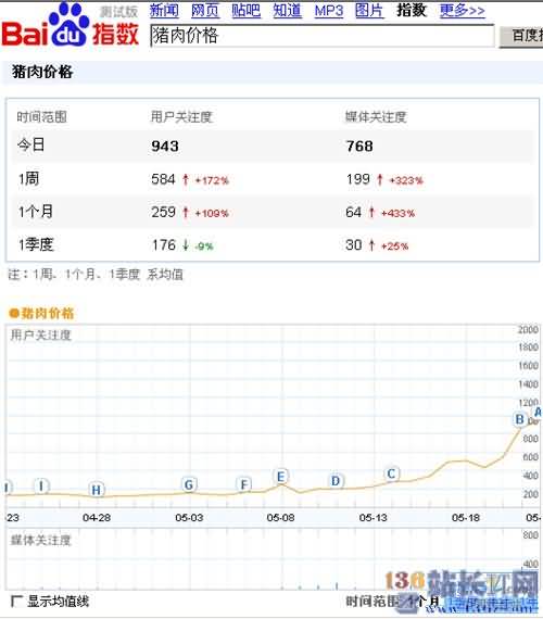 查了下百度指數,豬肉、豬肉價格這兩個關鍵詞還挺受關注的,不知道拿這兩個關鍵詞做優化會帶來多少流量。 136z.com