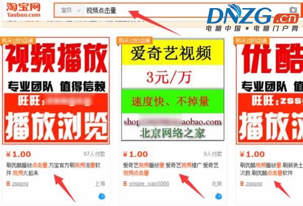 看到沒有,是不是播放量都過百萬的,而且視頻的標題都帶有相關的關鍵詞。他們是怎麼做到的呢?其實很簡單,就是利用刷視頻播放量軟件,刷上去的。這個時候我們還是去找萬能的淘寶,直接搜索“視頻點擊量”,如圖: