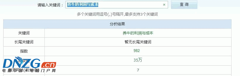 容易的關鍵詞有兩種,一種是指數很低的,比如指數10以內(但是指數低的詞並不是難度就一定小,這一點我們開始的時候已經明確了)。另外一種是指數很高,但是確實很容易的詞語(比如:養牛的利潤與成本)