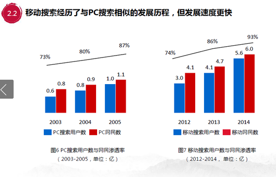 PC時代百度一下,你就知道,百度是大的多數流量的入口,而在移動端,隨著APP的興起,浏覽器內置頁面搜索已經被弱化,遠遠沒有PC那麼重要。