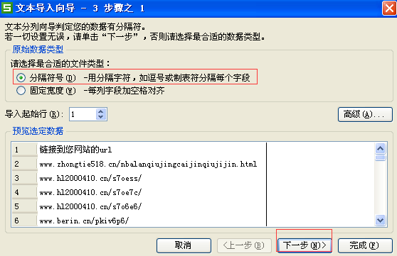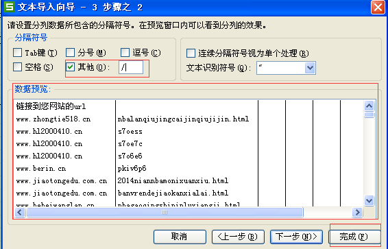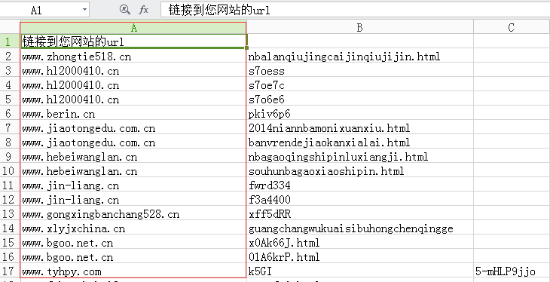 3、在表格當中選擇“鏈接到您網站的url”這一列,復制到一個txt文件當中,然後用excel打開這個txt文件會看到(提示:使用是wps,至於office應該是可以的,沒有測試過):
