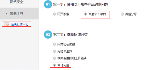 措施三:對拼接搜索結果頁,直接在百度站長平台反饋中心反饋