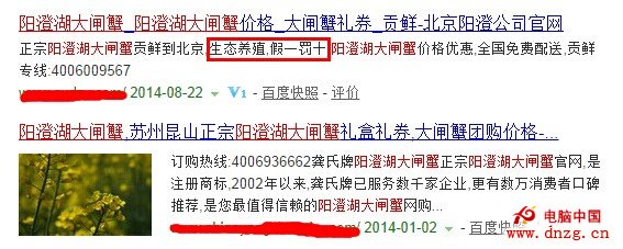圖中上面一個網站就做了描述的差異化,因為這個網站站長知道現在很多消費者知道陽澄湖大閘蟹市場上有很多假冒產品,所以他在網站上打消了客戶是否屬於是假貨的問題,而下面的這個網站就沒有體現,如果要消費都來選擇這兩個網站的話,我覺得第一個網站的可信度更高。