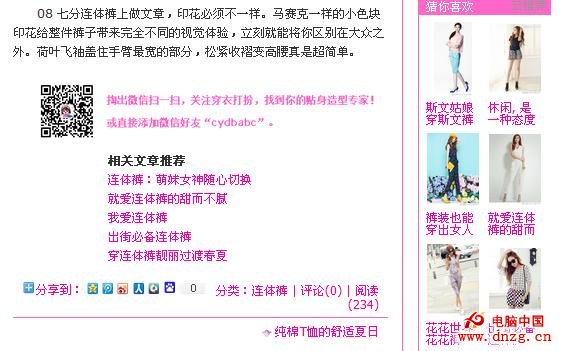 4、相關推薦,穿衣打扮網站的相關推薦還是用得比較多了,基本上整個網站首頁包括內容頁除了文章內容就是相關推薦了。