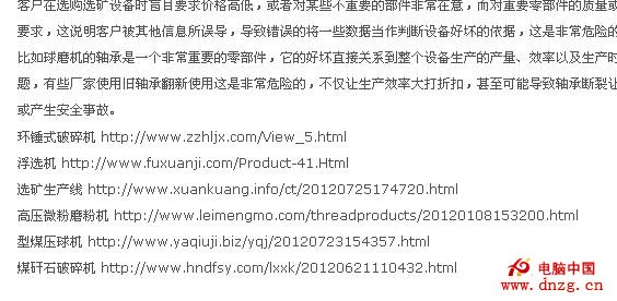 B2B網站需要大量的更新內容,主要內容來源都是管理員自己添加和UGC模式,這裡先說管理員自己添加,後面單獨說UGC模式。由於每天更新量非常大並且很多B2B網站沒有專門的編輯,所以內容質量大多不容樂觀,采集、復制、打亂、組合是最常見的手段,有很多甚至直接連鏈接一起采集,更有甚者還火上添油,如下圖,采集完內容再加點鏈接。我不明白這樣做的目的是什麼,是趕走用戶?是挑釁搜索引擎?我們說B2B網站是需要大量的信息,但是這種沒用的甚至有害的有什麼用呢?你閒暇的時候有沒有在統計工具看看這些頁面的效果呢?有一句話說得非常好:no zuo no die!機械性的填充內容是沒用的,關鍵在於內容的價值,內容是你所有產品和服務的載體,是網站的強驅動力,只有數量的內容只會讓用戶一次又一次失望。