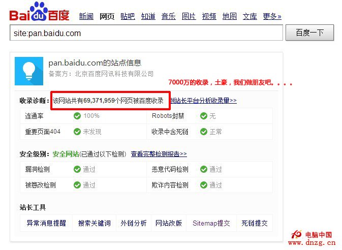 廢話不多說,先看下百度娘家人的優勢地位。目前百度網盤已經收錄了7000萬的網盤文檔,這個數量雖然比百度文庫的數億收錄量來說還有點寒碜,但相信過不了多久,網盤應該就可以比肩文庫甚至發揮比文庫更為重要的作用,畢竟文庫只是簡單的有限幾種文檔類文件分享,無法支撐其他應用程序類的文件類型。