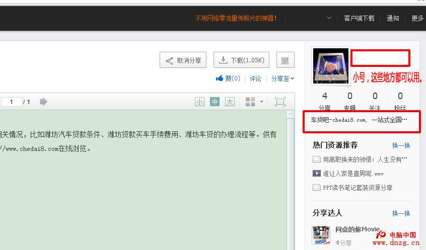 1.如果可以,請單獨注冊一個百度賬號,賬號的名字可以盡可能的貼近你網站的業務內容,賬號說明裡面可以對網站或者業務加一句簡單的介紹,但不要廣告的太明顯。這樣可以讓通過百度網盤過來的客戶,一下就可以明了的知道你是做什麼的,提高網盤文檔到網站的轉化率。