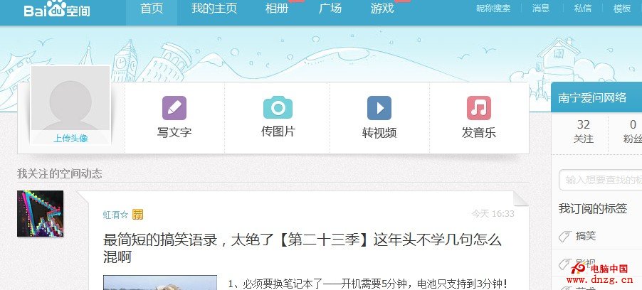 1.注冊百度賬號→登陸→點擊更多找到空間圖標進入→首次激活的用戶,進入空間後在右上角有一個“立即激活您的空間”這個標志,點擊進入→按照上面的提示完成百度空間開通。開通之後如下圖: