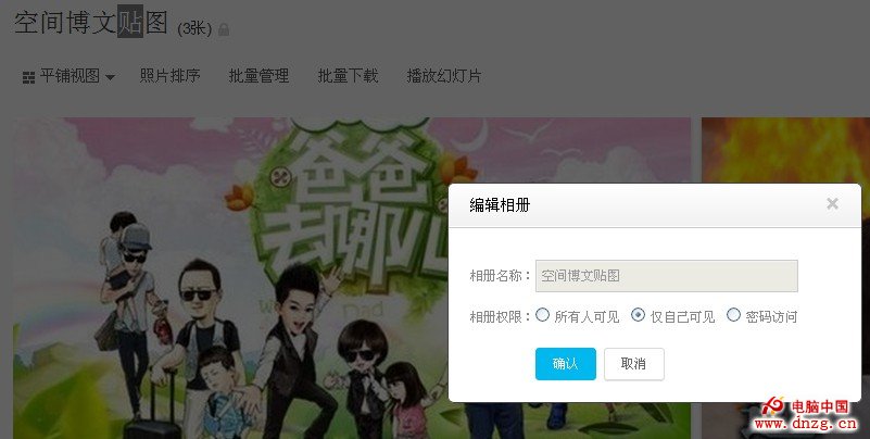 2.相冊浏覽權限要設置成公開,這樣別人才會點擊看到。點擊量多了就會吸引百度的關注。以剛才的例子為例,上傳完之後相冊旁邊有一個小設置按鈕,只要在這選擇即可: