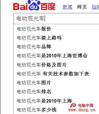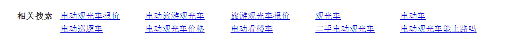 對於用戶的搜索行為可以通過在百度搜索框或其相關搜索中了解到,那麼該如何了解用戶的搜索行為呢?對此百度具有收集經常被用戶檢索關注的關鍵字這樣一個程序算法,它會將經常被用戶檢索的相關關鍵字存儲在數據庫中,當用戶通過百度搜索框檢索某關鍵字時,百度就會自動調出與被檢索關鍵字具有一定相關性的詞,而這些詞就是用戶時常會用來搜索的關鍵字,這些關鍵字就是用戶的搜索行為,當收集到用戶搜索行為後就可以圍繞這些詞進行內容的撰寫了。如:楊子seo通過百度檢索“電動觀光車”就會出現以下關鍵字如下圖所示: