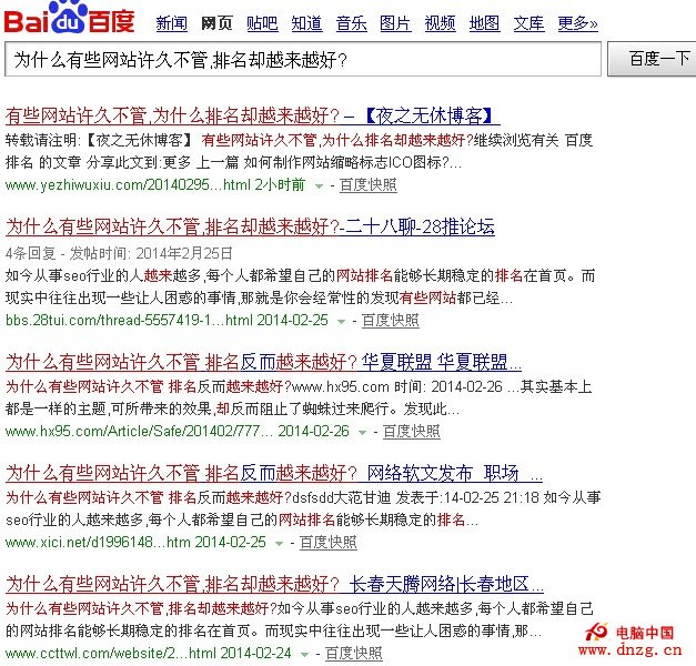 我想現在大多數的站長都知道百度對新站都有1~3個月的考察期,那麼大概在這100天中作為一個網站優化站長你們都做些什麼呢?是否還是每天的沉溺在外鏈的苦海裡,還是每天不間斷的通過一些查排名平台查自己網站的搜索引擎排名是上升了還是下降了、今天收錄是增加了還是降低了,今天外鏈被收錄了多少,被刪了又有多少。看似你一天都忙的要命,到實際上你所做的事情就那麼一點點,通常情況下可能人家只要兩三個小時就能搞定,而你卻要用一天的時間來做。這事倍功半的做法酌直讓人心疼!