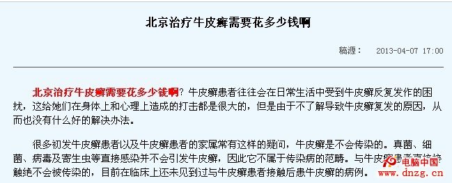 這樣的例子很多,這個完全是修改標題隨便湊合一篇文章。還有一些文章是由編輯們在網上找一些這樣的文章,然後隨便修修改改,關鍵詞什麼的隨便修改,內容東平西湊,迎合所謂搜索引擎的原創,但是這樣的文章沒有可讀性。文章中經常會出現醫院名稱,專家等等,但實際上這些根本就不是專家寫的文章。用戶進去之後看得可能一頭霧水,有可能還會誤導患者。其實網站內容真的沒必要為了原創而原創,原創是必須的,轉載是錦上添花的。這是在盧松松的博客中看到的。其實這句話確實挺不錯的,看看權重很高的新聞網站,難道他們的原創有那麼高嗎?大部分都是轉載的,只有一部分是自己的,但是內容切合實際,用戶更加喜歡浏覽。再看看權重很高的月光博客,你沒發現他的文章大部分也是轉載的嗎?但是照樣是高權重,哪裡來的呢?那就是文章很吸引人,也沒有為了原創而把別站的內容給修改了。