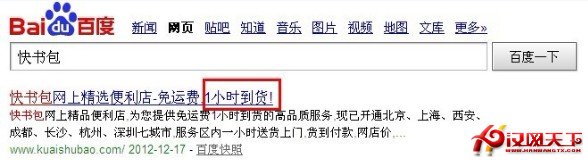 現在很多公司通過品牌營銷都讓自己的品牌名稱深入人心,如用戶一發快遞都會首先想到順豐,一說到手機便會想到蘋果,現在互聯網上也形成了品牌效應,如用戶一說網購就想到淘寶或者是京東商城、蘇寧易購、國美電器等,再如現在興起的網銷異軍-快書包,正是通過對自己品牌形象的塑造而在這個電商競爭激烈的時代有了自己的一席之地,那麼快書包是如何創立品牌形象呢?它突出的是一個“快”字,用戶只要想立刻購買某樣東西,首先想到的便是快書包,請看下圖: