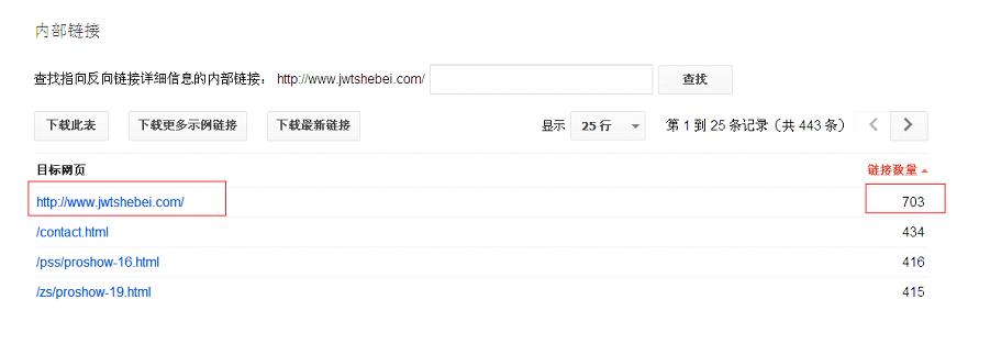 內部鏈接的頁面主要分析的就是網站的內鏈,也是看排在第一數量最多的頁面是否是優化的頁面?還有網站中各個頁面的鏈接是否有主次之分?