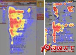 用戶不是閱讀,而是掃視浏覽。主要“高亮”區域在頁面內容的中間斷開了。這是典型的掃視浏覽模式。