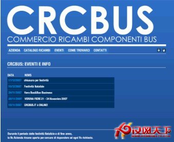Crcbus為網頁訪客提供了一個整潔簡單的設計。也許因為它是意大利語的,你不能明白這個網站是干嘛的,但是,可以可以清晰地識別出導航,標題,內容區域和腳注。注意,圖標都可以清晰地傳遞信息。只要將鼠標懸浮在圖標上,更多的信息就自動呈現出來。