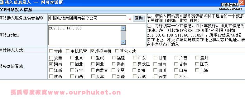 四、知道你站點的IP,接入商。(查詢下你站點的IP和接入商。這個你肯定要知道,當然你可以瞎編,只要接入商會給你通過舊無所謂了。)