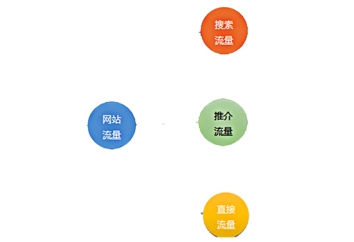 知道流量數據如何獲取後,那麼常見的流量類型有哪些呢?通常,我們將網站的流量分為三大類,分別是直接流量、推介流量和搜索引擎流量,如圖: