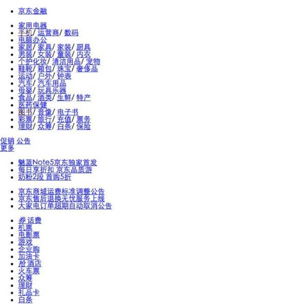 舉例說明,京東商城的網站首頁,大量的頁面內容沒有被搜索引擎快照收錄,僅對導航部分內容收錄,大量的鏈接也沒有被抓取。