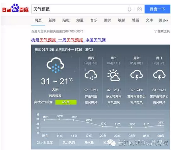 2)搜索引擎返回的結果,居然是杭州未來七天的天氣預報。