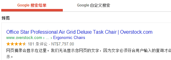 很明顯,百度提供精准的數據展示,完美的用戶體驗。再 來看下谷歌,google的豐富網頁摘內容,能自動提取網頁內部的微數據格式內容,展示該頁相關的制定細節信息,如:評論、優惠價格等如圖