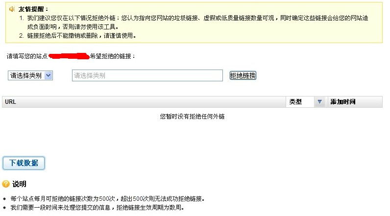 眾所周知,百度對外鏈這部分的態度越來越明確,那就是嚴格打擊低質量無效的外鏈,這也僅僅是從去年下旬出現的,在此之前的SEO,大家都圍繞著外鏈展開,很多人都沒想到相關性,外鏈質量等,只在乎外鏈的數量,導致一些網站的外鏈少則上千,多則上萬,余斗見過幾十萬的都有,這都是在百度明確做出改變之前的事情了,想刪掉已經晚了。那麼此舉推出拒絕鏈接工具則是這樣的網站站長的福音,在一定程度上減少了網站因外鏈造成的影響。