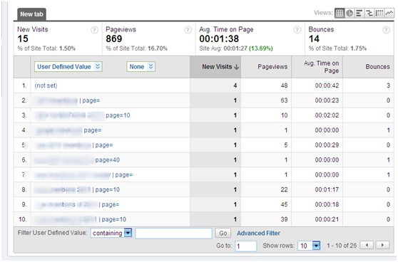 這邊出現的效果,是用戶搜索相應關鍵詞,並且這個關鍵詞在Google排名是第幾頁再點擊過來的。page=後面什麼都沒有,表示是第一頁,page=10表示第二頁,page=20表示第三頁,以此類推。