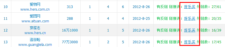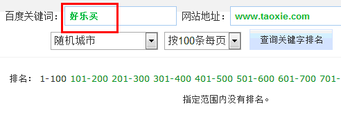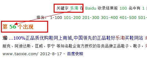 如果我沒看錯的話,好樂買也是淘鞋網的主要的競爭對手之一,竟然在友情鏈接中做“好樂買”關鍵字的排名,可惜我們大家搜索“好樂買”,在前五頁全部都 是好樂買本身的頁面排名,做這個關鍵字意義何在呢?下面筆者就截圖一下淘鞋網分別在“樂淘”和“好樂買”100名之類的排名,如圖